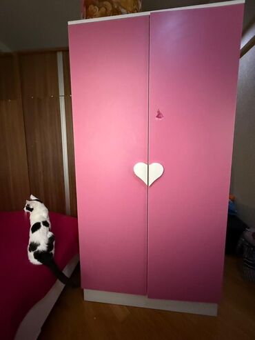• İkiqapılı şkaf – çəhrayı qapılar, mərkəzdə iri ağ ürək formalı tutacaq; alt və üst hissədə ağ haşiyə.
