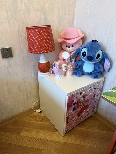 - Ağ korpuslu, 2 çekmecəli, ön panelləri çəhrayı tematik (stikerli).