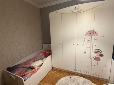 Qız otağı üçün istifadə olunub. (Yazı masasının deffektləri var, onu pulsuz veririk əgər lazımdırsa). Matras matraskin firmasınındır, ortopedikdir, 300azn alınıb tək matras. Şkafın üstündəki stickerleri problemsiz çıxartmaq olur.