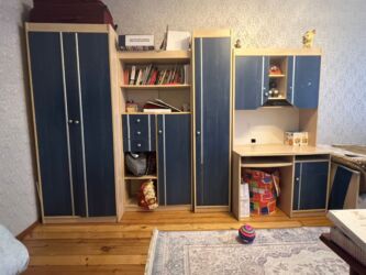 Uşaq/yeniyetmə otağı üçün modul divar mebeli və iş masası dəsti.