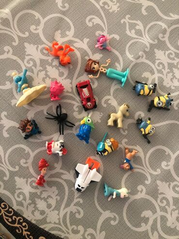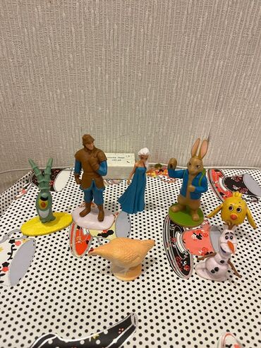 • Kiçik kolleksiya fiqurları: müxtəlif cizgi və film qəhrəmanları, heyvan fiqurları, kosmik gəmi/şatl modeli və s. (şəkillərdə hamısı görünür)