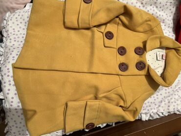 Uşaq üçün sarı rəngli qış palto - Model: kapüşonlu, dizüstü uzunluqda - Material: yumşaq, tüklü toxuma (isti saxlayan qalın parça) - Rəng: parlaq sarı - Bağlanma: ön hissədə 3 ədəd ağ düymə + iplə...