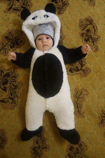- Praktiklik: Tam bədənli, ayaq ucları qapalı; sərin havada gəzintilər üçün uyğun, körpəni isti saxlayır. Kapüşon başı örtür və dekorativ qulaqlar əlavə şirinlik qatır. Papaq əlavə istilik və rahatlıq verir.