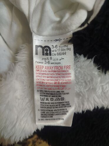 - Ölçü: 3–6 ay (etiketdə: up to 8 kg / CN 66/44).