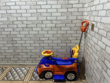 Uşaq üçün pedallı itələmə maşını - Rəng: narıncı-göy-sarı. - Sükanlı