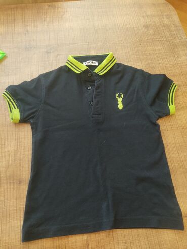 Uşaq üçün polo köynək - Rəng: ağ, yaxa və qollarında mavi–boz zolaqlı haşiyələr - Dizayn: qısaqol, klassik polo yaxa, 2 düyməli ön qəfəs - Material: yumşaq trikotaj pambıq qarışığı (şəkildən görün...