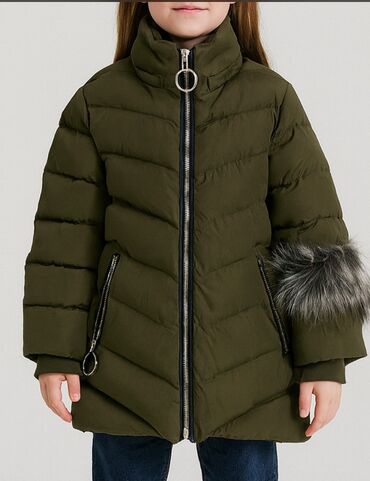 Uşaq qış gödəkçəsi - Rəng: zeytun-yaşıl - İsti, qalın doldurmalı içlik; iç tərəf tünd mavi rəngdə - Kapüşonlu, kapüşonun kənarı süni kürk bəzəkli - Tam uzunluqda ön fermer (zip) - Ön hissədə iki b...