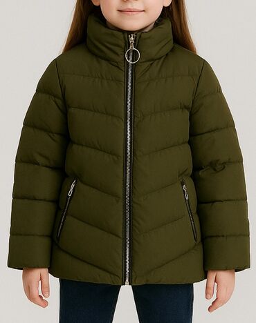 Uşaq üçün qış gödəkçəsi - Rəng: zeytun-yaşıl (xaki) - Model: qalın şişmə (puffy) gödəkcə, önü ikiqat fermuarlı - Kapüşon: çıxarıla bilən, yandan tənzimləmə ipləri və düyməli bərkidici ilə - Ciblər...