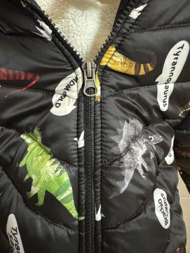 Dinozavr printli və içi tüklü uşaq gödəkçəsi. Bu qara rəngli gödəkçə uşaqlar üçün isti və rahatdır. Ön hissəsində fermuarı var. Dinozavr motivləri uşaqlar üçün cəlbedicidir. Heç istufadə olunmayıb yenidir. Türkiyədən E-bebek mağazasından alınıb. Təzədir istifadə olunmayıb heç.
