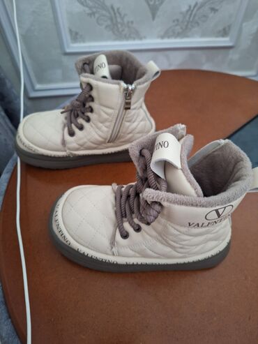 Uşaq qış botları. 4-5 defe geyinilib, yeniden secilmir. Ayaqina balaca geldi deye satiram. Hem qiz hem oqlan uwaqi geyine biler. 23 razmer - Rəng: bej - Dizayn: yan hissələrdə çiçək aplikasiyaları...