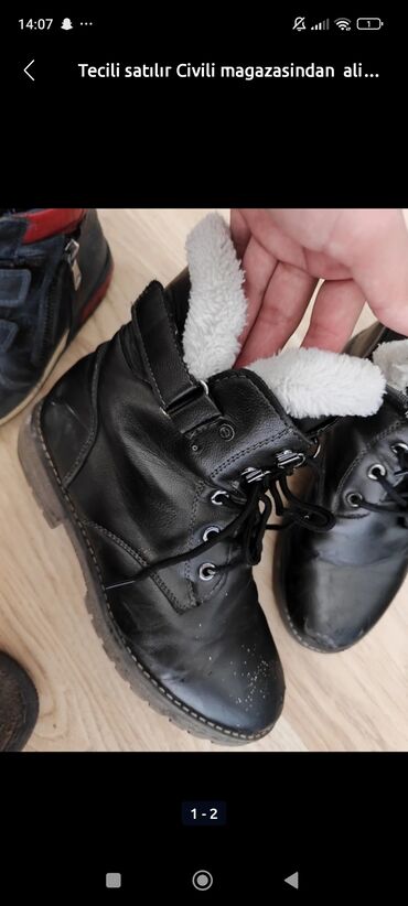 Məhsul: Uşaq qış çəkmələri - Brend: ZARA - Rəng: Qara - Ölçü: 29 (daban üzərində qeyd olunub) - Model: Qısa boğazlı, yumşaq süet effektli üst - İçi: Qalın, tüklü/isti astar (açıq boz rəng) – soyuq...Giriş•Qeydiyyat