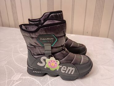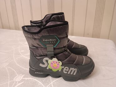Uşaq üçün qışlıq yürüş çəkməsi - Rəng: tünd boz/qəhvəyi - Material: suya davamlı (üzərində “waterproof” qeyd olunub) - İsti daxili: qalın, yumşaq süni kürk astar - Bağlama: iki rəngli möhkəm kordo...