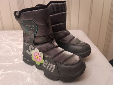 33 razmer. Uşaq üçün qış botları - Rəng: tünd boz/qara tonlarda - Model: ayaq biləyi üstü, bağcıqlı və “Velcro” yapışqanlı kəmər - İçlik: qalın süni kürklü astar – isti saxlayır - Kənarları və dil...