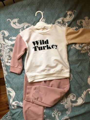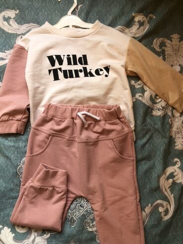 18-24 ay Uşaq geyim dəsti – 2 parça - Rəng: ağ - Dizayn: ön hissədə qəhvəyi-bej rəng çalarlı xətli (çəkməli) ayıcık aplikasiyası; şalvarın yan tikişlərində eyni naxışlı zolaqlar - Komplekt: uzunqo...