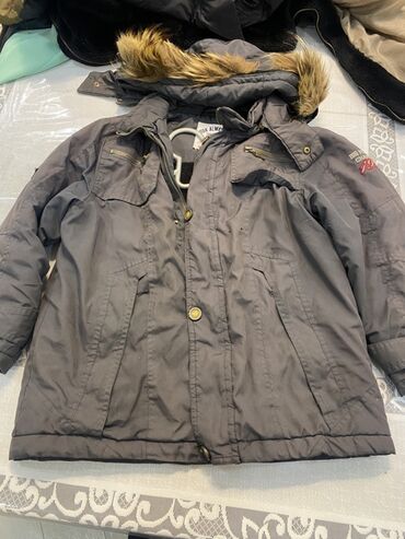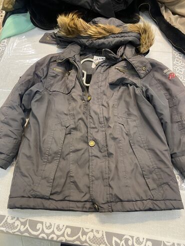 3-4 yaş-Uşaq üçün qış parkası.İdeal vəziyyədədir. - Rəng: tünd boz/qəhvəyi ton - Model: kapüşonlu, isti dolğulu - Ön bağlanma: gizli fermuar və düymə-snap kombinasiyası, küləkdən qoruyan geniş pla...