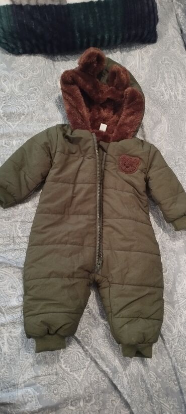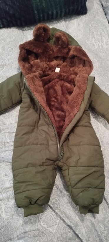 Uşaq üçün qış kombinezonu – Mothercare 0-3 ay. - Rəng: açıq zeytun-yaşıl - Material: üzəri yüngül quilted parça, içi tam boyu boyunca ağ, yumşaq süni qoyun kürkü (fleece/şerpa) astar - İkiqat ön ...