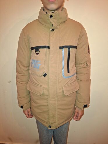 Uşaq/yeniyetmə üçün isti qış gödəkçəsi – bej rəngdə, uzun kəsim.