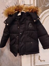 Uşaq qış gödəkçəsi – qara rəngdə, qalın və isti model. - Kürk effektli (saxta tüklü) kənarı olan kapüşon - Ön tərəfdə həm fermuar, həm də düyməli bağlanma – küləyə qarşı əlavə qoruma - İki ədəd mai...