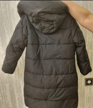 Uşaq üçün ikiüzlü qış gödəkçəsi - Rəng: şampan/boz-qızılı (parlaq metalik) və iç üzü krem rəngli süni kürk - 2 tərəfli geyinmə imkanı: bir tərəfi su-ötürməyən parlaq kumaş, digər tərəfi qalın tükl...