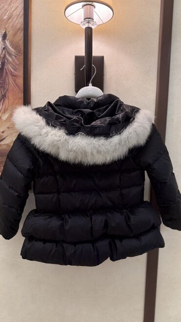 Uşaq qış gödəkçəsi – qara rəngdə, qalın və isti model. - Kürk effektli (saxta tüklü) kənarı olan kapüşon - Ön tərəfdə həm fermuar, həm də düyməli bağlanma – küləyə qarşı əlavə qoruma - İki ədəd mai...