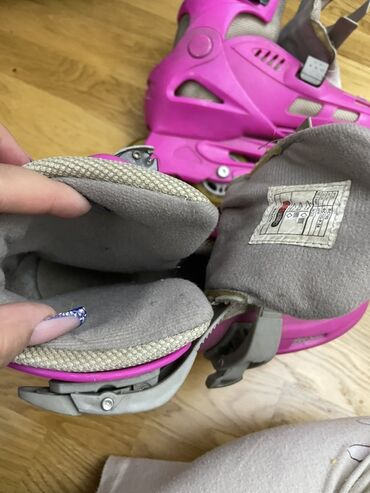 UP2 brendinin inline təkərli konkiləri - Rəng: qara-çəhrayı, dekorativ naxışlı dizayn - Ölçü: tənzimlənən (ayaqqabının yan hissəsindəki düymə və relslə ölçü böyüdülür/kiçildilir) - Bağlama sistemi...