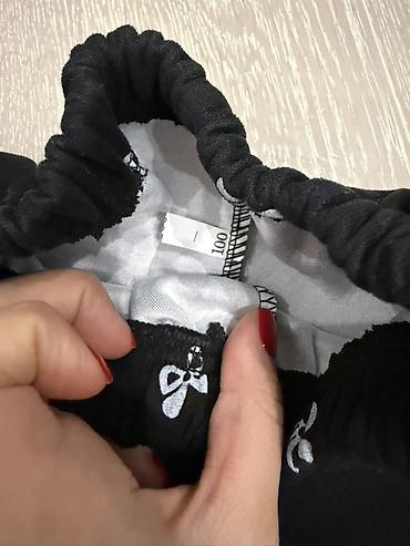 Uşaq şalvarı – qara rəngdə, elastik bel. - Ölçü: 3 yaş / 98 sm (etiketdə göstərilib) - Material tipi: yumşaq toxumalı trikotaj (elastik və rahat) - Kəsim: düz və enli balaqlar - Dizayn: cibsiz, düy...