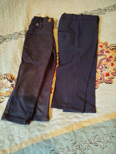 Uşaq şalvarları dəsti - 4 ədəd uşaq şalvarı. - Rənglər: tünd göy (2 ədəd), açıq mavi cins, açıq boz. - Modellər: dar kəsim klassik pambıq şalvarlar və klassik mavi cins. - Biri düymə və fermuarlı,...