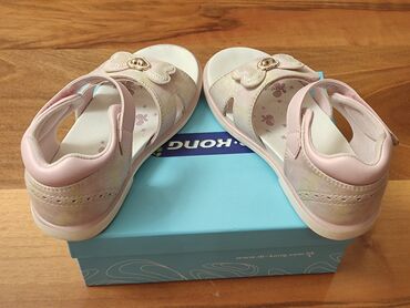 Uşaq sandaleti – DR.KONG İdeal vəziyyətdədir, cəmi bir dəfə geyilib. Dr Kong mağazasından 102 manata alınmışdı. - Rəng: krem, qızılı detallar ilə - Model: açıq burunlu, ön hissədə iri qızılı parı...