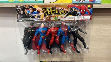 - Paketdə 5 ədəd fiqur: qara pelerinli qəhrəman, mavi-qırmızı kostyumlu qəhrəman, qırmızı kostyumlu güclü qəhrəman, mavi-qırmızı hörümçək motivli qəhrəman, qara kostyumlu hörümçək motivli qəhrəman