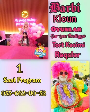 - Proqram məzmunu: interaktiv oyunlar, şar şou (hədiyyə), tort kəsimi, rəqslər