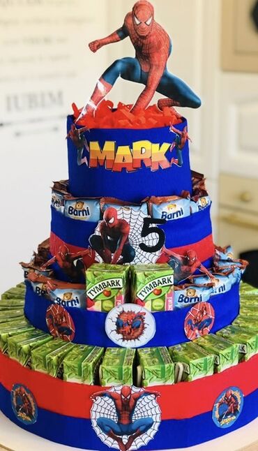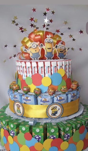 - Aşağı mərtəbələrdə qutulu içkilər (Tymbark), “Barni” biskvitləri, Kinder şokoladları, “Chupa Chups” konfetləri və dekorativ stikerlər
