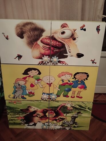 - Ön panellərdə rəngarəng cizgi obrazlı printlər: “Madagascar”, “Buz Dövrü” və uşaqlar üçün illüstrasiyalar.