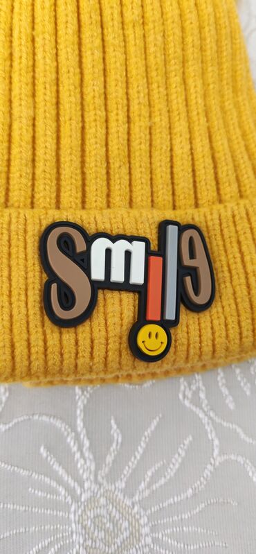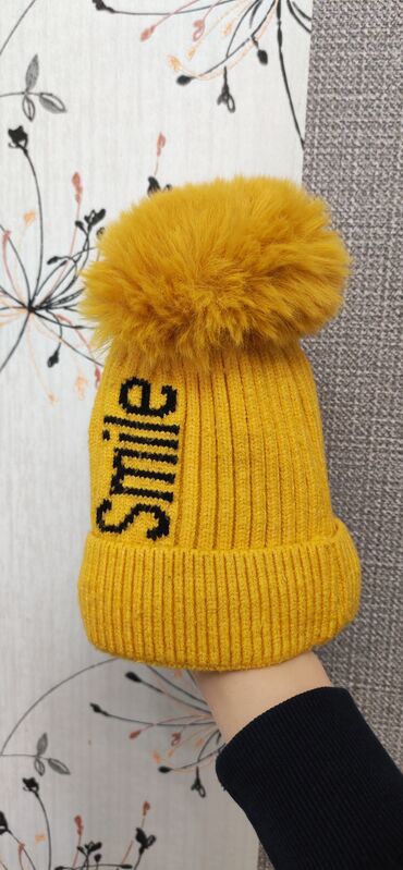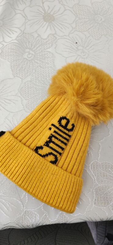 Sarma toxunuşlu, parlaq sarı rəngdə papaq. - Material: yumşaq, isti