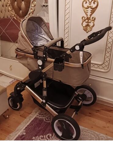 - 2-in-1 sistem: beşik tipli körpə yatağı və oturacaq bloku (gəzinti üçün) – hər ikisi şassiyə təkkliklə taxılıb-çıxarılır.