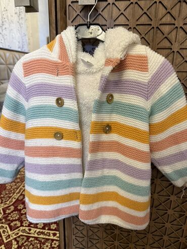 Uşaq üçün kapüşonlu şerpa jaket - Ölçü: 3–6 ay (etiketdə göstərilib) - Rəng: açıq krem/bej - Material: yumşaq, tüklü şerpa parça – isti saxlayır, toxunuşa rahat - Bağlanma: ön hissədə tam uz...