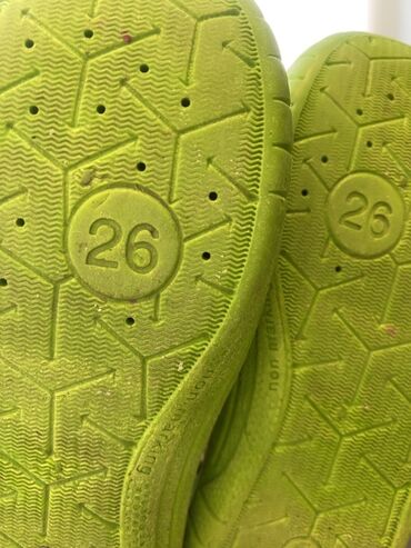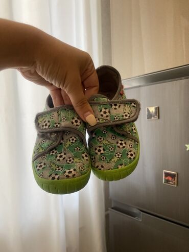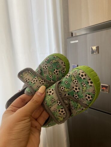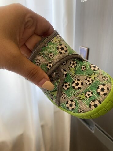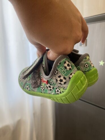 Baha alinb iki defe geynilb oda baxcda vesaalm Uşaq tərliyi yaşıl və boz rənglərdə, üzərində futbol topu və meydança naxışları ilə bəzədilmişdir. Tərliyin üst hissəsi boz rəngdə, qayışları boz rəngdə, alt hissəsi isə açıq yaşıl rəngdədir. Velcro bərkitməsi sayəsində ayağa rahat uyğunlaşır və geyinib çıxarmaq asandır. Bu terliklər həm evdə, həm də bağçada istifadə üçün idealdır. 6 mant 26 razmer