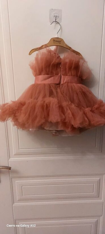 Brend: Lovi Ölçü: 100 (təxmini boy 95–105 sm üçün) Məhsul: Zərif uşaq paltarı, açıq şaftalı/çəhrayı tonlarında. - Material: üstündə nazik tül qatları, içdə yumşaq astar. Tül üzərində xırda qızılı ...