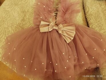 Uşaq üçün ziyafət/libas – zərif tüllü don - Rəng: açıq pudra-çəhrayı - Model: ətəyi çoxqatlı tül, yuxarı hissə incə parıltılı; yuxarıdan aşağıya qədər büzgülü qatlar - Bəzək: bel hissəsində həcmli...