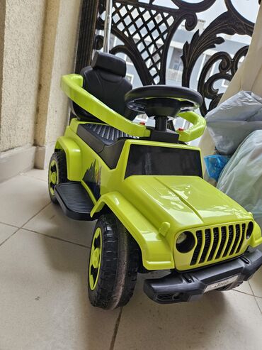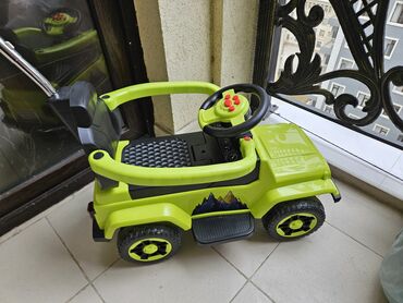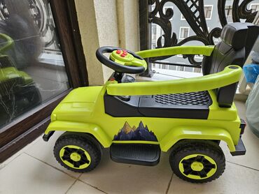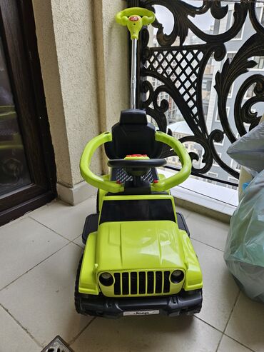 Uşaq üçün ayaqla sürülən maşın – yaşıl rəngdə, SUV/jeep tərzində.