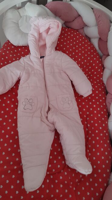 Barniyo markalı körpə üçün qışlıq uyku/kombinezon kisəsi. Xüsusiyyətlər: - Rəng: açıq çəhrayı, ağ naxışlarla - Kapüşonlu, tam bədən örtüklü dizayn - Ön hissədə uzunlamasına fermuarlı açılış (asand...