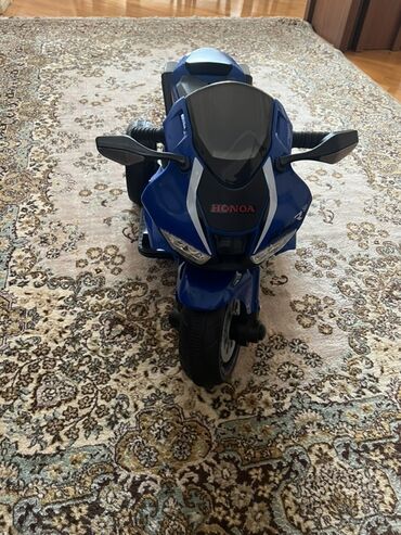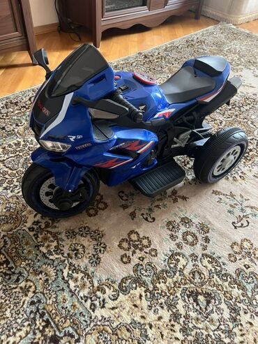 Uşaq üçün elektrikli motosiklet – mavi rəngli, idman üslubunda