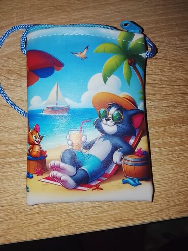 - Rəngli çaplı ön üz: çimərlik mövzusunda pişik və siçan obrazlı illüstrasiya