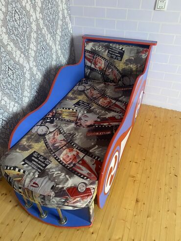 - Dizayn: Mavi-qırmızı rəng çalarlarında, yanlarda “təkər” və ox naxışları, ön hissədə xrom effekti verən dekorativ sütunlar. Uşaqlar üçün cəlbedici yarış maşını görünüşü.