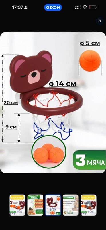 NarıncıБаскетбольное кольцо для ванной, мячики легкие, можно использовать и в других развивашках, состояние отличное, 5 манат