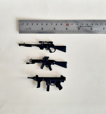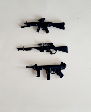 Uşaqlar üçün müxtəlif rəngli və formalı oyuncaq silahlar dəsti təklif olunur. Dəstə mavi və ağ rəngli su tapançası, yaşıl rəngdə uzun tapança, sarı rəngdə kiçik tapança, qara rəngdə tapança, qırmız...