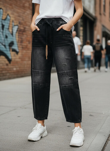 Oğlan üçün qara rəngli baggy jeans şalvar