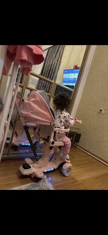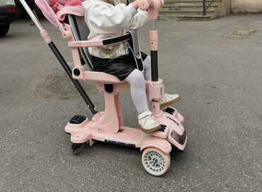 Uşaq üçün çoxfunksiyalı skuter–araba (3-ü 1-də) – çəhrayı rəng.