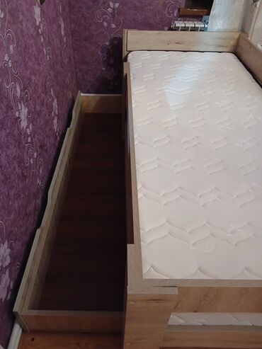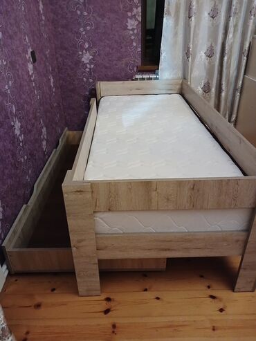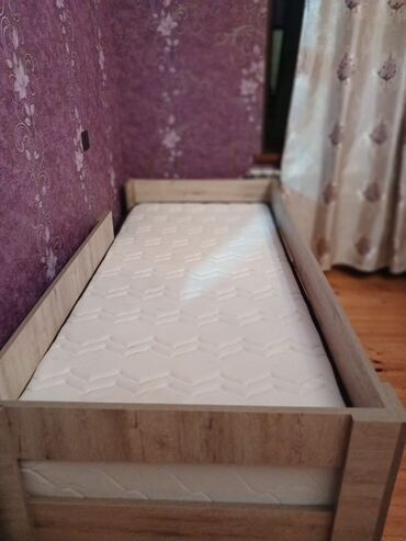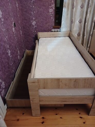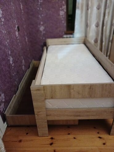 Uşaq/yeni yetmə üçün tək nəfərlik taxta çarpayı və döşək dəsti.