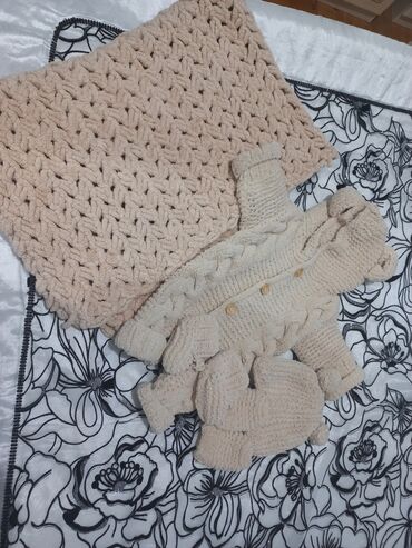 Məhsul: Əl işi uşaq trikotajları Təsvir: - Yumşaq toxumalı, hipoallergen uşaq ipindən hazırlanmış trikotaj dəstlər. - Modellər: 1) Kapüşonlu plyuş kombinezon – ön hissədə düyməlidir, qulaq forma...