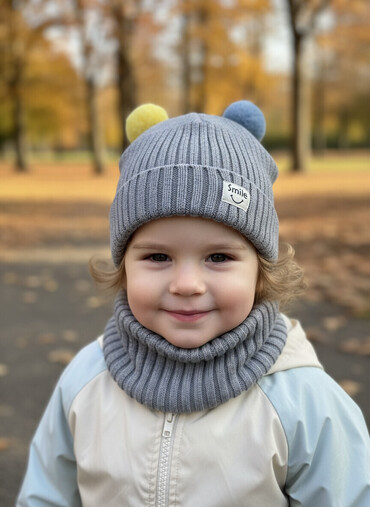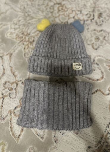 Uşaq üçün 2 hissəli papaq və boyunluq dəsti - Rəng: sarı/xaardal - Papaq: iki ədəd iri, tüklü pompon (ayı qulağı effekti), ön hissədə “MOONLIGHT 15” etiketli - Boyunluq: boru forması, ön hissədə “...